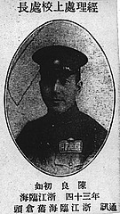 陈良投奔黄埔军校前当教师的经历与传说。在小芝一带还流传着当地名人何谟(字苇渡,日本留学归国人员,系第六师范学校教师,曾任学监、修身、教育、理化教员)先生事迹的传说,可借以见证陈良青年时期的经历与追求。其中就有何苇渡先生促成六师教师陈良投笔从戎,离开师范学校进入黄埔军校的故事。据说当年何苇渡在担任校长(当属夸张溢美之辞。何谟任职六师未担任此职,但做过学监,是学校中的“重要干部”)时,陈良适在六师任教,而教学效果不尽人意,上课的时候管不住学生。何苇渡看到陈良虽不擅长于教学,但善于做事,果敢干练,是一块做事业的好料,于是就提醒他不妨去做别的营生,如报考黄埔军校之类的事情。就六师《同学录》中所列学校职员情况而言,陈良是学校里从校长到庶务这一干人员中年龄最轻而担任“要职”的教师,可以推知他在校内的才干属于出色之人,必非平庸之辈。所以这一传说肯定存在误传成份,又据熟悉陈良者记叙:陈良长得南人北相,个子人高马大,秃顶无发,面庞红润丰腴,说起话来慢条斯理,音色极美,和他魁梧硕壮的身材外表恰成反比(见图3)。当时黄埔军校通过全国各地的国民党和共产党组织在全国各地或公开或秘密地宣传招生,陈良也像当时进步青年一样受孙中山革命思潮鼓舞,闻国民党在粤中整军经武,创办军校,乃投笔南下,于民国十三年底来到黄埔军校,参加革命行列。从此进入波澜壮阔的国民革命斗争生涯,从黄埔军校政治部科长、经理处上校处长起步(见图4),从北伐战争起直至抗日胜利,20年间基本上担任的都是军需经理工作,历任军需署少将副署长,军政部中将会计长,联勤总部军需总监副总司令兼经理署长,粮食部一级政务次长等职。特别是抗日战争时期担任军政部军需署中将署长,交通部次长,为北伐战争、抗日战争与民族独立解放事业作出了重大贡献。