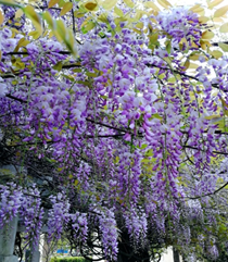在给友人的《一封信》里,朱自清先生写道:“我真爱那紫藤花!……竟有那样雄伟,那样繁华的紫藤花,真令我十二分惊诧!……我也曾几度在花下徘徊:那时学生都上课去了,只剩我一人。暖和的晴日,鲜艳的花色,嗡嗡的蜜蜂,酝酿着一庭的春意。我自己如浮在茫茫的春之海里,不知怎么是好!那花真好看:苍老虬劲的枝干,这么粗这么粗的枝干,宛转腾挪而上;谁知她的纤指会那样嫩,那样艳丽呢?那花真好看:一缕缕垂垂的细丝,将她们悬在那皴裂的臂上,临风婀娜,真像嘻嘻哈哈的小姑娘,真像凝妆的,像两颊又像双臂,像胭脂又像粉那样繁华的紫藤花,真令我十二分惊诧!”